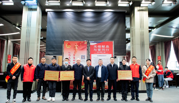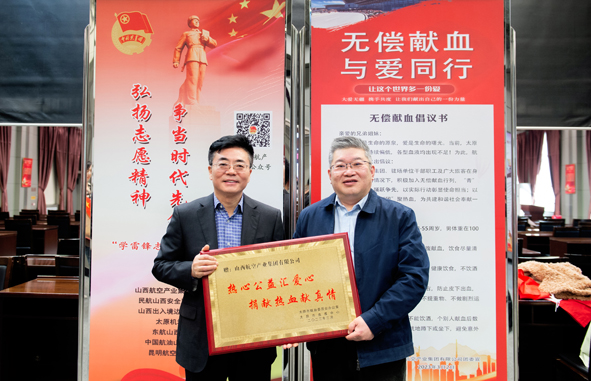 太原市血液中心為航產集團頒發“熱心公益匯愛心 捐獻熱血獻真情”獎牌