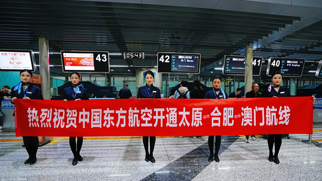 3月31日,太原機場正式開通太原=合肥=澳門航線。此次航線的開通,不僅恢復了太原至澳門的直航服務,還通過經停合肥的方式,進一步豐富了旅客出行選擇,為三地間的經濟、旅游及人文交流搭建了便捷的空中橋梁。