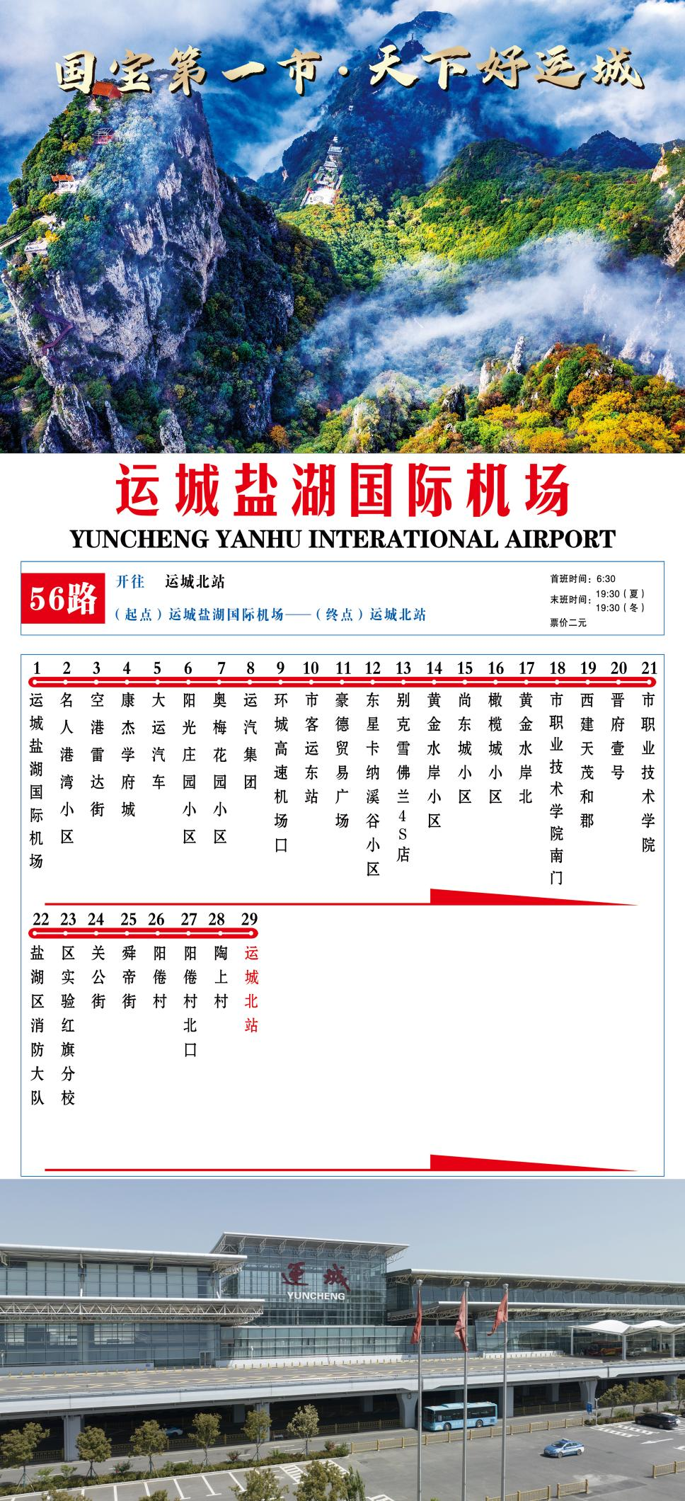 ②56路公交車(chē)(運(yùn)城鹽湖國(guó)際機(jī)場(chǎng)----運(yùn)城北站)