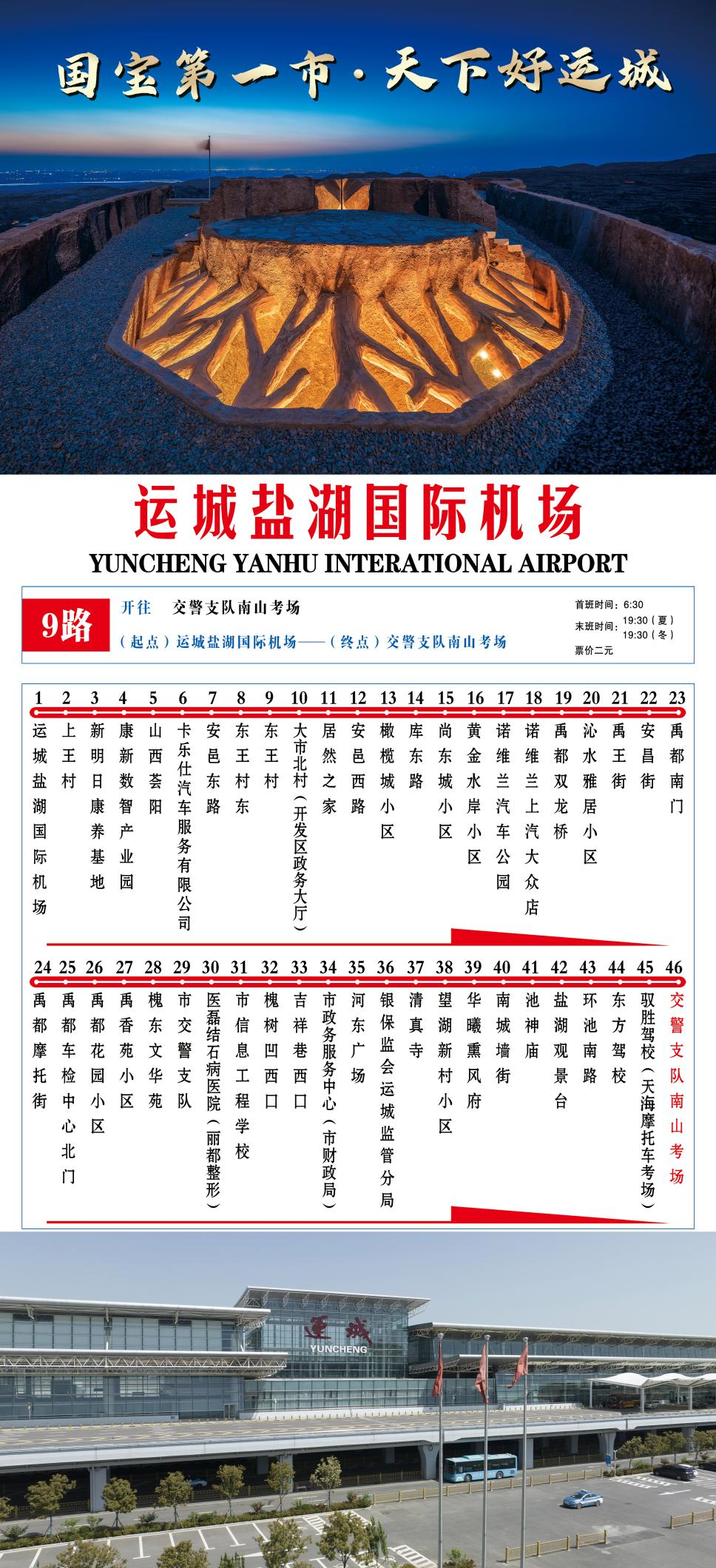 ③9路公交車(chē)(運(yùn)城鹽湖國(guó)際機(jī)場(chǎng)----交警支隊(duì)南山考場(chǎng))