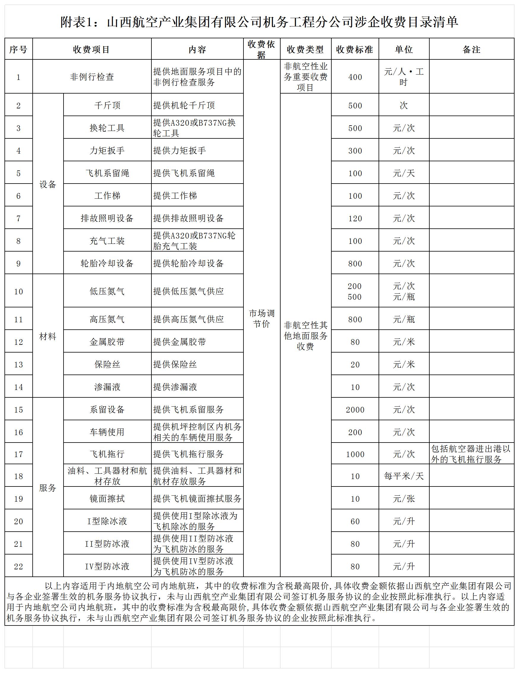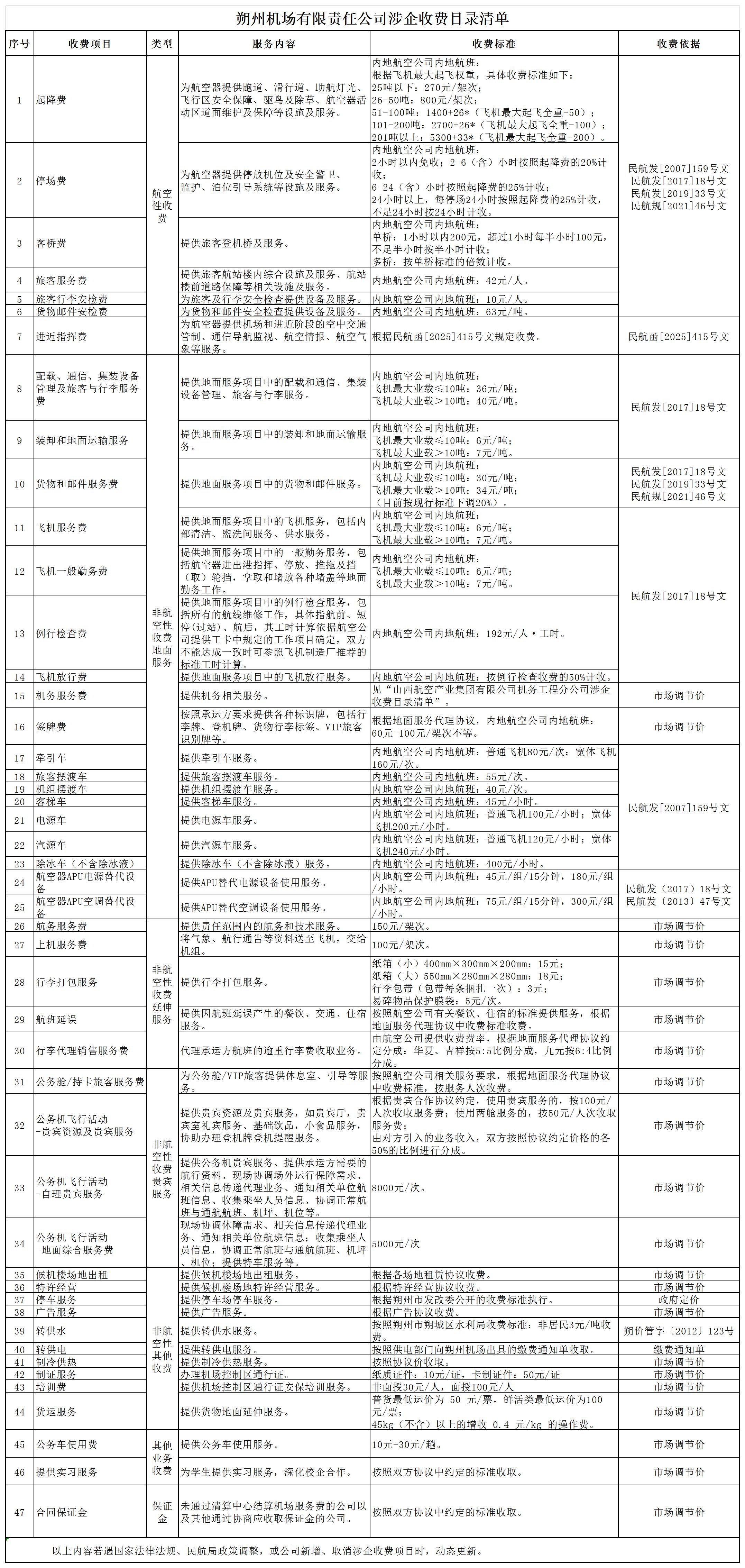 朔州機(jī)場(chǎng)有限責(zé)任公司涉企收費(fèi)目錄清單